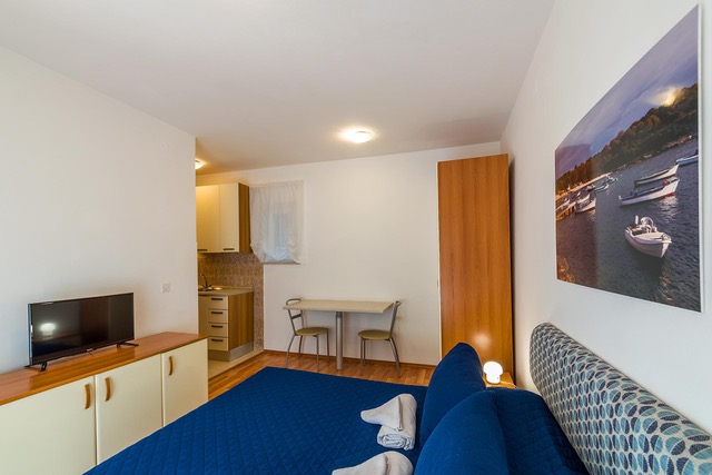Dans Sun Palace, à votre disposition six appartements : 2 studios – idéals pour couples sans enfants – et 4 appartements deux pièces appropriées pour les familles ou des amies jusqu'à 5 personnes.